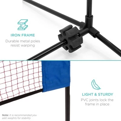 Let the games begin! This 12.5ft Freestanding net is compact and perfect for indoor or outdoor games of badminton, volleyball, and tennis. With a little creativity, the net can even be serviceable for a round of soccer or pickleball! This 5ft-tall net features an easy setup for the eager gamer. Interconnected bars conveniently lock together into a lightweight iron frame without any tools at all! The frame and net fold down for quick and easy storage in the included carrying bag. Light & sturdy, the durable metal poles resist warping while PVC joints lock the frame in place! Please note: It is recommended you add weights for stability. With just a little creativity and a few additions, this is the net for all occasions!