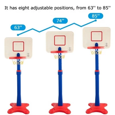 - Height Adjustable – This children basketball stand’s pole has five adjustable positions, it can adjust the height from 63” to 85” to match player’s age, height and skill level. It can accompany your child for a long period of time