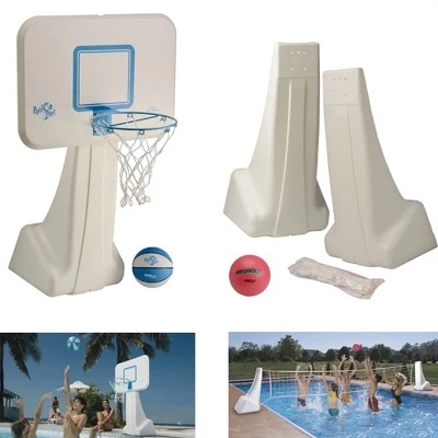 - 2-IN-1 POOL SPORTS SET: Make your pool a lively sports field with this 2-in-1 volleyball and basketball kit