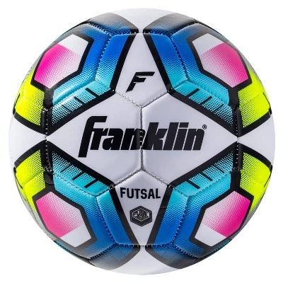 This low bounce futsal ball from Franklin Sports is perfect for indoor or outside futsal soccer games. The ball has less bounce to stay in play longer and demands quick thinking and passing from futsal players. Crafted with soft abrasion, a resistant cover for an excellent touch and feel. The Franklin Futsal balls meet recognized standards for size, weight and low bounce to comply with requirements for competitive play. The dynamic colorful graphics make this football easy to see for all players on all surfaces. This is the perfect soccer ball for working on your footwork and ball control. Size: 3 Color: Multi (white, black, green, blue, and pink)