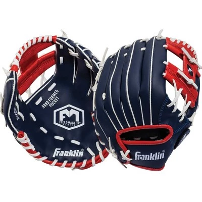 Franklin Sports’ Field Master Baseball Glove is designed to be the perfect glove for players of all ages. Made from a durable synthetic leather, this glove has an adjustable wrist strap so you can tailor fit it to your hand for maximum feel and comfort in the field. Plus, the synthetic leather comes with a pre-formed pocket which is designed to break in exactly to your liking quickly and easily. With sizes and webs available for every position, there’s a Field Master for every player. So whether you’re playing baseball, softball, or teeball, the Field Master is the perfect glove for you. Grab yours and get in the game today! NOTE: Left Hand Thrower glove = worn on right hand to throw with left; Right Hand Throw = glove worn on left hand to throw with right