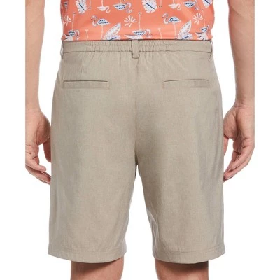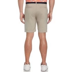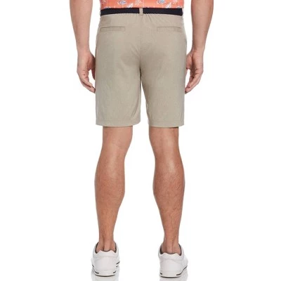 Style and comfort combine with these golf shorts from Jack Nicklaus. The durable plain weave material features a heathered design for a multi-hued appearance that matches well with a variety of styles of polo tops. Moisture-wicking technology moves perspiration away from your skin to keep you feeling dry and built-in sun protection prevents UV rays from penetrating through the fabric to your skin. Innovative stretch seams and elastic in the waistband create a comfortable fit for a greater range of motion as you move. Made from 20% recycled polyester, you can feel good about wearing these shorts on or off the golf course.