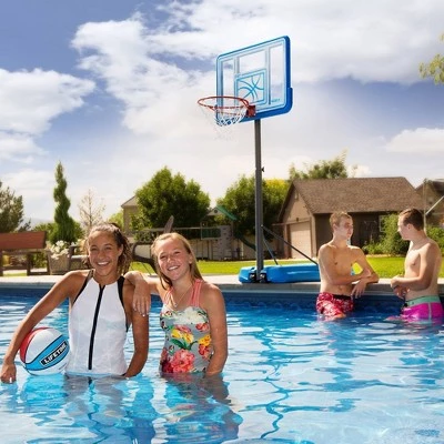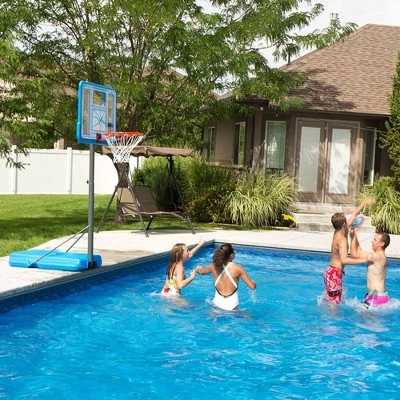 This Poolside basketball system from Lifetime Products features a 44 in. Shatter-Proof Fusion® backboard with a telescoping height adjustment that adjusts from 4 to 6.5 feet high. It also includes a Classic Rim with an all-weather nylon net and a 3 in. diameter round steel pole. With a 27-gallon heavy-duty portable base, this system is the perfect addition to your swimming pool.