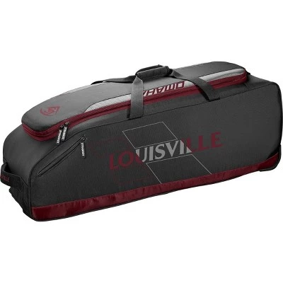 Available in a variety of colors and with a removable customization panel, the Louisville Slugger Omaha Wheeled Rig is a must-have for serious ballplayers. A zippered bat compartment comfortably fits four bats and the main compartment houses a helmet, gear and your glove. An interior L Bracket helps your bag last longer with inline wheels and integrated fence hooks for easy transport and storage.
