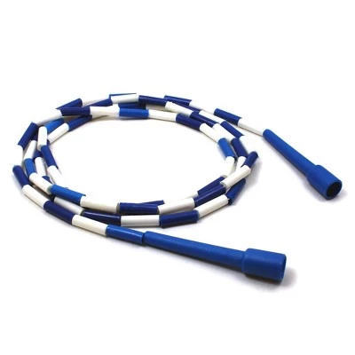 - Plastic 9′ jump rope. Unbreakable sections, heavy nylon rope.