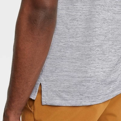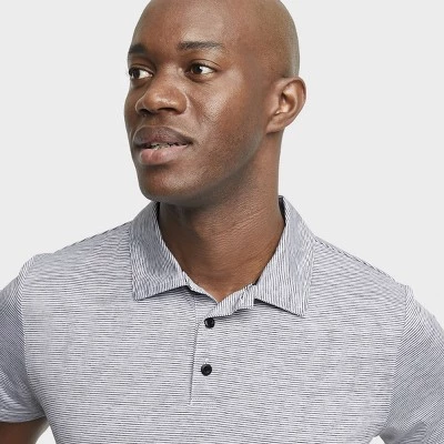 From travel to a game of golf to running errands on a warm day, this short-sleeve striped polo shirt provides a casual and stylish update to your activewear closet. Moisture-wicking fabric with a quick-dry finish and odor-resistant treatment helps keep you cool and comfortable, while added spandex and an overlock hem lend greater range of motion. Thoughtful detailing comes in the form of an at-hip length for versatile wear and a quarter-length button front for put-together style.