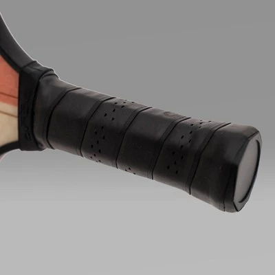 Paddle handle is finished with a thick rubber band to keep the grip in place