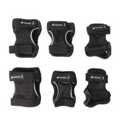 Protect your knees, elbows, and wrists while you skate with the Rollerblade Skate Gear 3 Pack Set. The Skate Gear 3 Pack is a quality set of protective gear designed for all levels of skaters to make skating more enjoyable, safer and ideal for any type of training or casual skate session. You’ll get 2 wrist guards, 2 elbow pads, and 2 knee pads for keeping yourself protected from scuffs and scrapes. You’ll also get a reusable mesh bag for toting the skate gear around.The pads are right/left anatomically designed, stay secure with the sock sleeve and strap system, and comfortably protect the body with a slim profiled fit. Right/left marking on the straps ensure the pads are worn on the correct side of the body. The durable construction, fit and protection make the Rollerblade Skate Gear a great set of protective pads.Disclaimer: Check the size chart in the photos to ensure a secure fit.