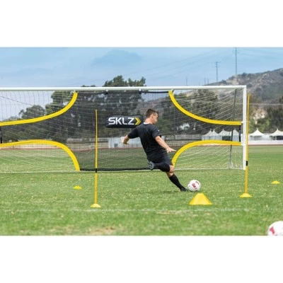 Backed by multiple seasons of research, the SKLZ Goalshot highlights the four soring zones where goalies from soccer’s top leagues are scored on. Ideal for players of all levels, the Goalshot does what cones, targets, and stand-in goalies can’t do: it creates visual focus on the specific zones where players are four times more likely to score. Over time, the Goalshot helps players build the muscle memory and vision needed to score more often. The trainer provides instant feedback after a shot, forcing players to adjust and correct their position and shooting technique. Available in four different sizes and designed to fit the goal frame, the Goalshot sets up in minutes and comes in its own carry bag for easy portability.
