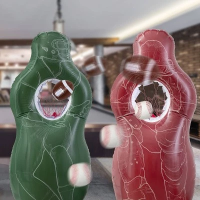 Turn up the heat with your passing and pitching! The target is reversible for your choice of football or baseball action that does not quit. The set includes a soft baseball and football that can be used by a child with smaller hands to still get their practice time in. The 12†hole ensures that older kids can use equipment that more suits their age and still have fun while improving their throwing technique. Use the inflatable target with the football side or the baseball side to encourage year-round practice of multiple sports. The included foam balls and net allow users to get into the action almost immediately. We also provide two repair patches should any tears or snags pop up.
