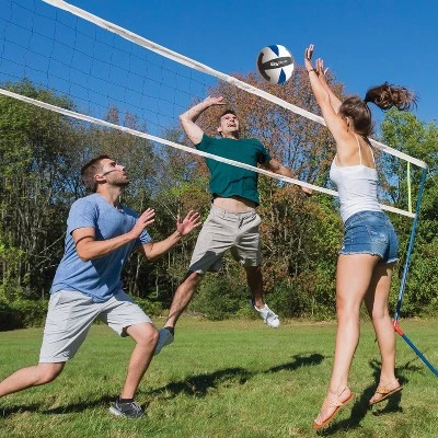 Serve up some fun at your next backyard BBQ with the EastPoint® Ascender Volleyball Set! Use agility and finesse in this quick and fun game! This set is pre-assembled in the box so it sets up in minutes! Faster setup means MORE TIME PLAYING! Once the net is up, the net tension can be easily adjusted with the ratcheting tensioning system. Bump, Set and Spike your way to victory with your teammates! What’s better than Family, Friends, Fitness and Fun!