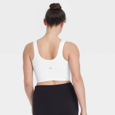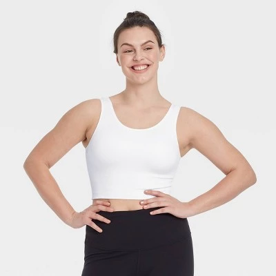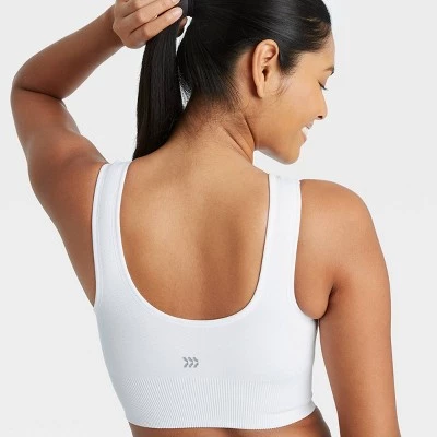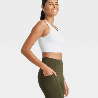 Designed for medium-impact exercise, this knit sports bra was made for your everyday workouts. No matter how you move, a seamless design helps eliminate bulky wear for smoother movement, while a moisture-wicking fabric keeps you comfortably dry and cool. Removable padding lets you adjust the fit to your liking, further aided by a longline length lending additional coverage. A medium-impact design offers support for more rigorous workouts, finished with a ribbed construction for thoughtful texture.