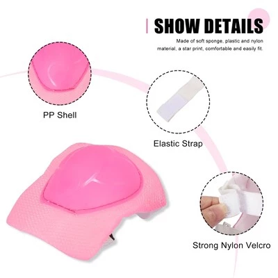 Set skating protective gear for , designed with blue black turtle shell shape plastic guard, nylon mesh sponge pads, hook loop closure elastic bands and black lining, easy and comfortable to wear.Give knees, elbows and palms an effective protection from possible wound on skating or other sports activities.Note: please kindly measure your elbow, knee and palm size before ordering this item.