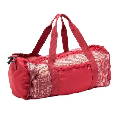 This set of mesh duffel bag are suitable for a wide variety of occasions. The versatile design makes them perfect for beach days, soccer practice, laundry days, and gym sessions. You will receive 1 red and 1 blue mesh duffle bag. The gym duffle bags have a unisex design and can be easily folded down when not in use. The sports bags measure 19 x 10 inches. The The zippered workout bags can be used at different scenario such as swimming, martial arts, snorkeling and camping.Product names are trademark of listed manufacturer or other owners, and are not trademarks of eForCity Corp. The manufacturer does not necessarily endorse use of these products.